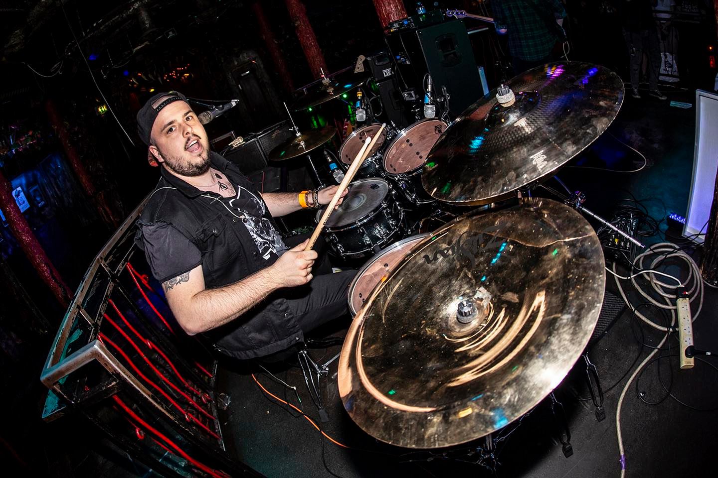I started playing drums at 14, which now means I have been playing for over half my life! Both my Dad and Grandad are/were drummers, so I am a third generation noise maker.